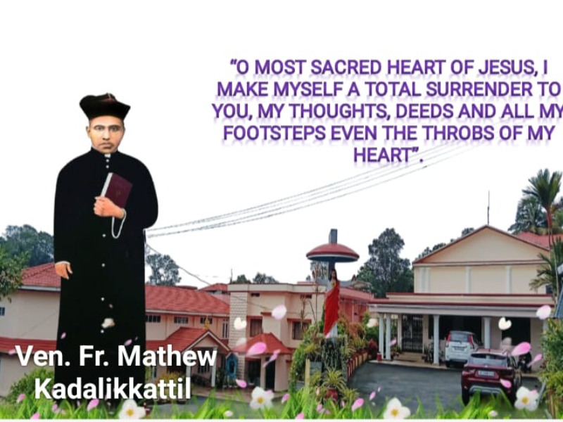 Fr Mathew was called to his eternal reward on 23 May 1935 after 63 years of meritorious life. It was after a month of very painful illness he yielded his soul to the loving Heart of Jesus. Even in the last years of his life he was fully committed to the cause of the poor in spite of all physical strain due to his rheumatic and diabetic illness. He was buried in the Holy Magi Church at Pala, Kerala. Later on, his mortal remains were transferred to the provincial house Chapel of the Sacred Heart Sisters at Pala on 6 August 1937. Fr. Mathew was raised to the status of the Servant of God on 12 April 1989. Pope Benedict XVI, on 27 June 2011, after verifying the heroic virtues of the Servant of God Fr Mathew Kadalikkattil raised him to the status of 'Venerable'.